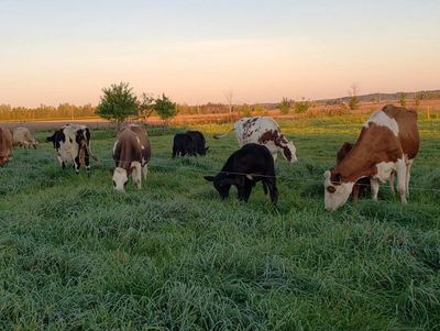 How we raised veal back when we had dairy cows: Raised differently from the conventional industry, our calves were born on pastures, and stayed with and fed from their moms. Mom, of course, was on pasture and ate grass, and soon after, the calves learned to do the same. The calves enjoyed a mixed diet, being able to choose milk from mom or grass from our pastures. They were raised as naturally as possible with little to no human intervention. Our veal was also raised longer than the industry standard in Canada.