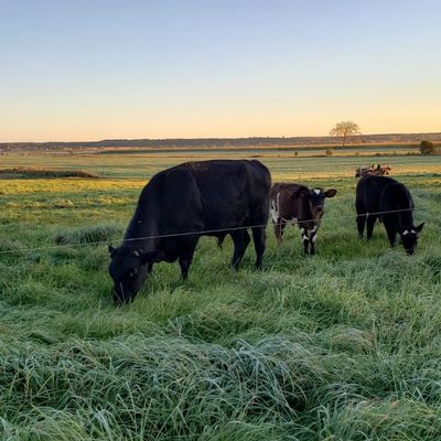 Our cattle are 100% grass-fed, meaning they only eat grass in the growing season and hay (dried grass) + silage in the winter, never grain-fed.